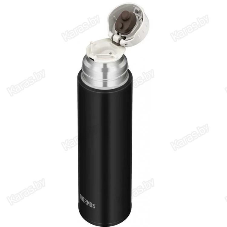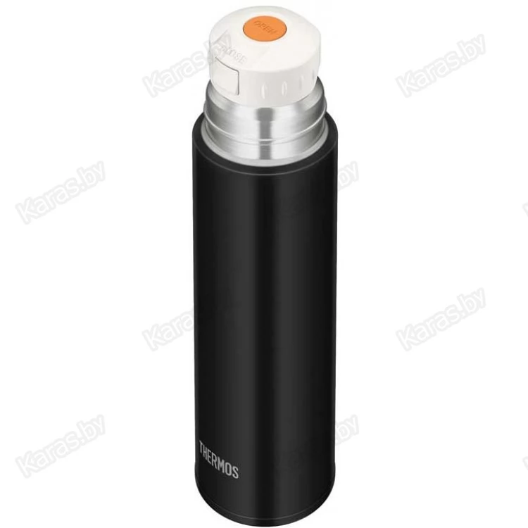 Термос для напитков THERMOS® FFM-500 MTBK комфортен в использовании: продуманная конструкция крышки-пробки позволяет его быстро открывать нажатием на кнопку, расположенную на верхней крышке, при этом она откидывается и автоматические фиксируется в открытом положении. Пить можно непосредственно из термоса благодаря удобному поильнику, не откручивая пробку при каждом использовании, а угостить напитком собеседника можно, используя крышку-чашку.