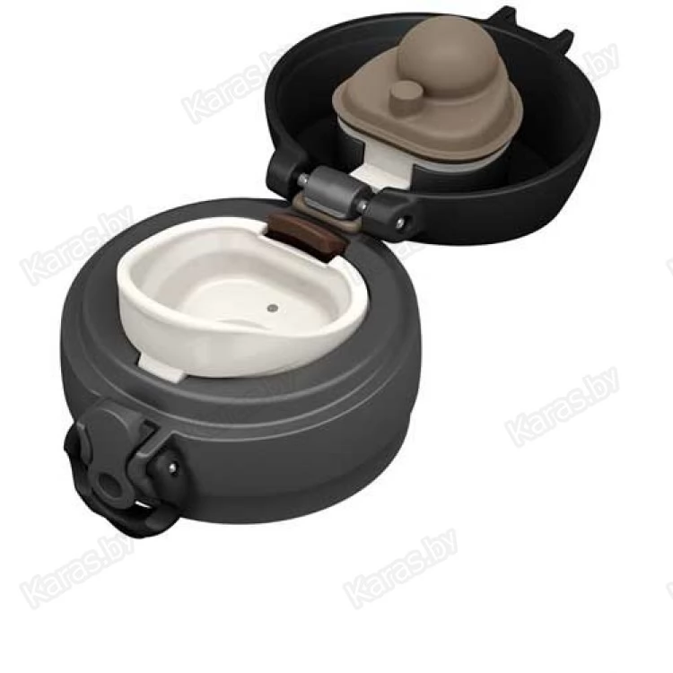 Уникальная конструкция крышки-пробки делает его полностью герметичным, а дополнительное кольцо-фиксатор убережёт от случайного открывания и проливания напитка, поэтому его можно помещать в компактную сумочку или рюкзак, не опасаясь загрязнений. Термос THERMOS® JNL-354 MTR комфортен и надёжен в использовании: его можно открыть одной рукой, левой или правой, лёгким нажатием на кнопку. При этом крышка откидывается на 180 градусов и автоматически фиксируется в открытом положении. Крышка-пробка с удобным поильником легко разбирается для тщательного очищения всех деталей и также просто собирается. Привлекательный внешний вид изделия создаёт глянцевое покрытие чёрного цвета.