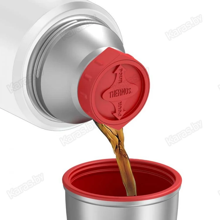 Температурные характеристики термоса KING безупречны – напитки сохраняются в нём горячими или холодными более полутора суток благодаря инновационной технологии вакуумизации межстеночного пространства. Термоизолирующие свойства термоса усиливает глубокая винтовая пробка, в конструкции которой предусмотрены специальные пазы для наливания напитка, что позволяет не выкручивать пробку полностью. Уникальное сочетание дизайна в стиле американского ретро, современных технологий и материалов делают термосы THERMOS® KING особенно популярными у ценителей качества и стиля.