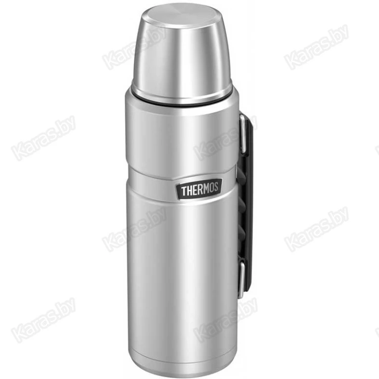 Температурные характеристики термоса KING безупречны – напитки сохраняются в нём горячими или холодными более полутора суток благодаря инновационной технологии вакуумизации межстеночного пространства. Термоизолирующие свойства термоса усиливает глубокая винтовая пробка, в конструкции которой предусмотрены специальные пазы для наливания напитка, что позволяет не выкручивать пробку полностью. Уникальное сочетание дизайна в стиле американского ретро, современных технологий и материалов делают термосы THERMOS® KING особенно популярными у ценителей качества и стиля.