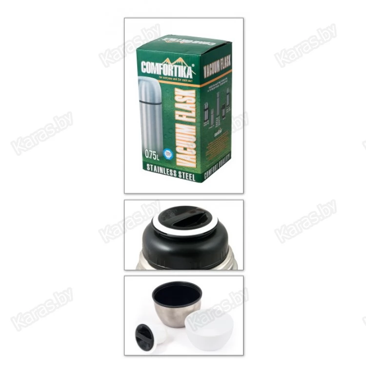 Термос одинаково хорошо сохраняет температуру горячих и холодных жидкостей. Изготовлен из высококачественной пищевой нержавеющей стали, что гарантирует идеально гигиеничную среду для хранения жидкостей. Между внешней и внутренней стенками термоса достигнут высокий вакуум, что обеспечивает длительную сохранность температур жидкостей. Крышку термоса можно использовать как кружку.