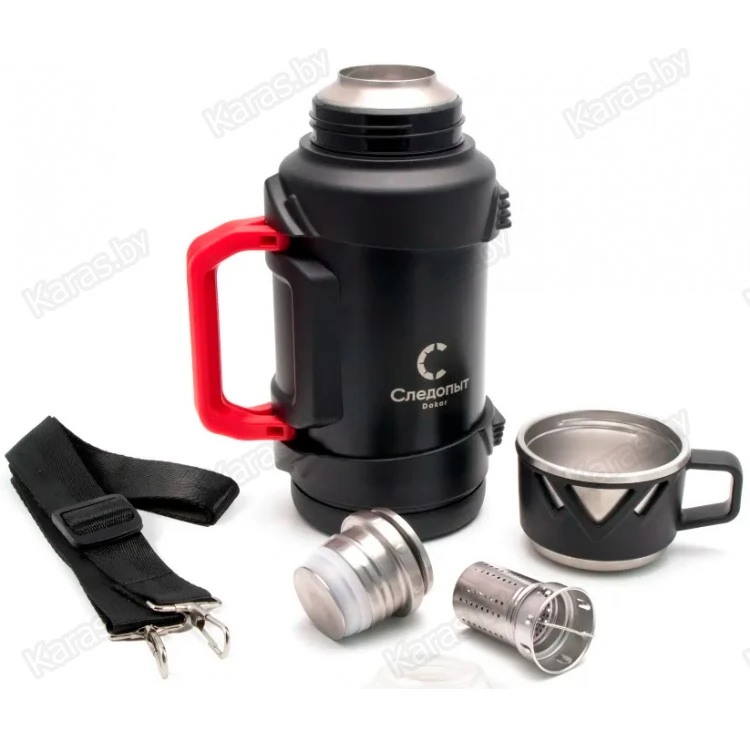 Премиальная серия термосов «Следопыт –DAKAR» отличается высокими теплоизоляционными свойствами и уникальным современным дизайном, символизирующим прочность и надежность. Внутренняя колба изготовлена из нержавеющей стали AISI 316, которая является криогенным конструкционным металлом и имеет повышенные антикоррозийные свойства. Сталь применяется в пищевой и медицинской промышленности. Термос имеет двойные стенки с вакуумной изоляцией и оснащен пробкой-кнопкой, что позволяет быстро вылить содержимое, не отвинчивая пробку полностью. Одной из особенностей данной серии является фильтр и съемный стакан-сито для заварки чая непосредственно внутри термоса. Термос комплектуется стильной вместительной кружкой-крышкой объемом 250 мл. Кроме того, он оснащен удобными складными ручками для переноски и съемным регулируемым наплечным ремнем длиной до 105 см. Термос «Следопыт-DAKAR» - необходимый атрибут в походе, на рыбалке и загородной прогулке, а также отличный подарок к любому знаменательному событию.