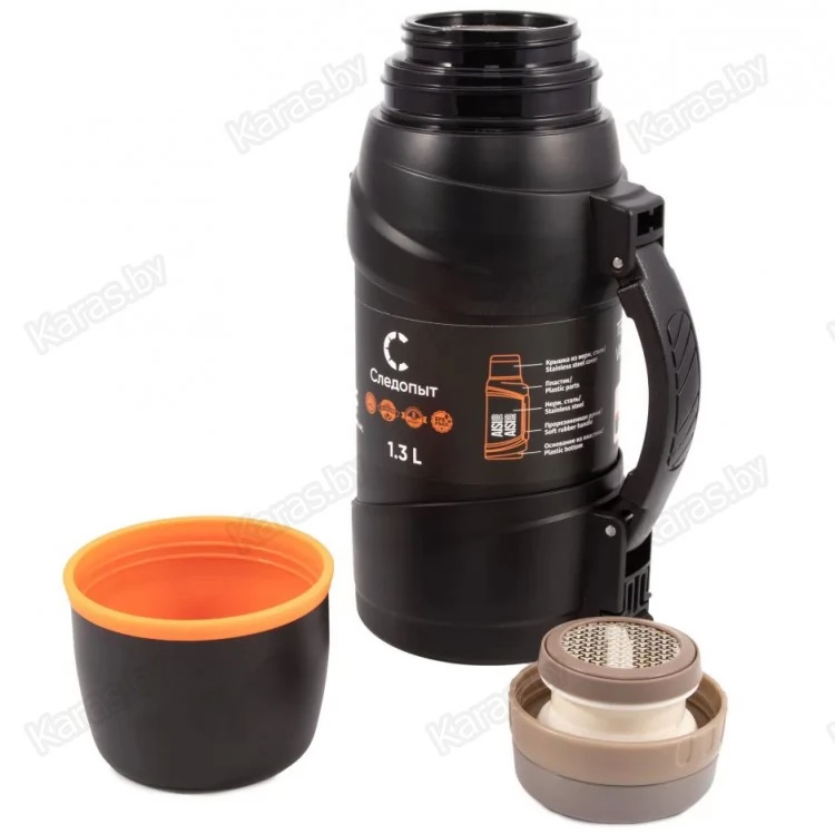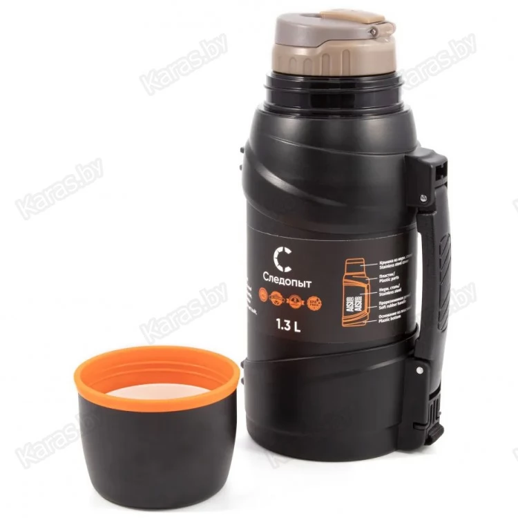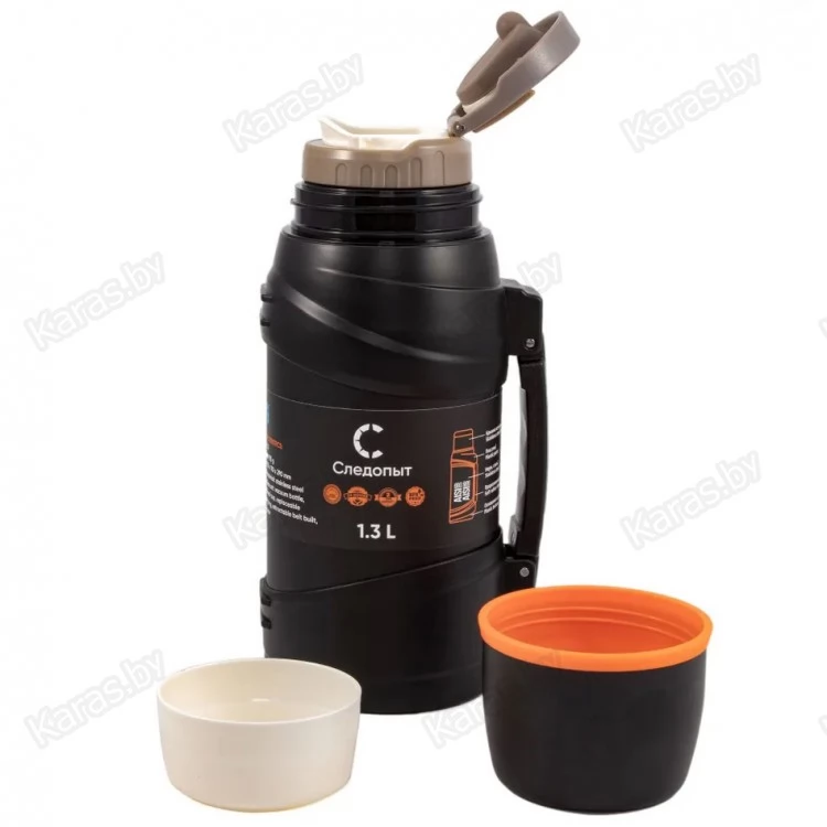 Термос «Следопыт- Safari Trevel» это усовершенствованная серия, сочетает в себе современный оригинальный дизайн и функциональность. Серия оснащена наплечным выдвижным ремнем длиной 85 см, встроенным в гнездо нижней части ручки. Термос имеет двойные стенки с вакуумной изоляцией и оснащен пробкой с откидным механизмом, что позволяет выливать содержимое, не отвинчивая пробку полностью. Пробка термоса имеет фильтр-сито для того, чтобы было комфортно пить чай, заваренный непосредственно внутри термоса. Термос комплектуется вместительной крышкой объемом 300 мл и дополнительной чашкой объемом 150 мл. Кроме того, он оснащен удобной ручкой для переноски.