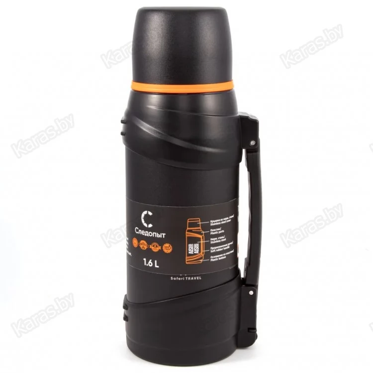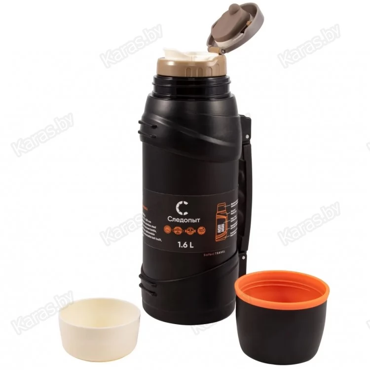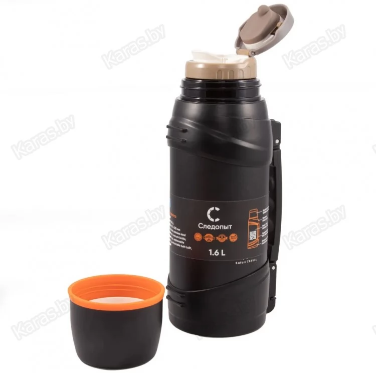 Термос «Следопыт- Safari Trevel» это усовершенствованная серия, сочетает в себе современный оригинальный дизайн и функциональность. Серия оснащена наплечным выдвижным ремнем длиной 85 см, встроенным в гнездо нижней части ручки. Термос имеет двойные стенки с вакуумной изоляцией и оснащен пробкой с откидным механизмом, что позволяет выливать содержимое, не отвинчивая пробку полностью. Пробка термоса имеет фильтр-сито для того, чтобы было комфортно пить чай, заваренный непосредственно внутри термоса. Термос комплектуется вместительной крышкой объемом 300 мл и дополнительной чашкой объемом 150 мл. Кроме того, он оснащен удобной ручкой для переноски.