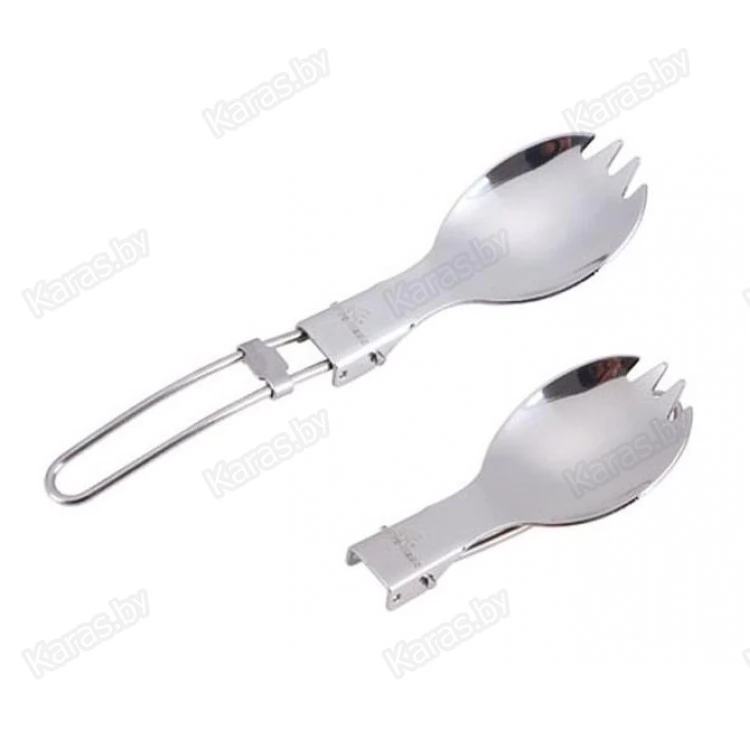 Оригинальное конструктивное решение делает возможность использовать ложку в качестве вилки, из-за этого нет необходимости нести с собой дополнительный прибор. Пищевая нержавеющая сталь абсолютно нетоксична для человека. Вилка-ложка очень прочная. Это отличное решение для путешествий и походов.