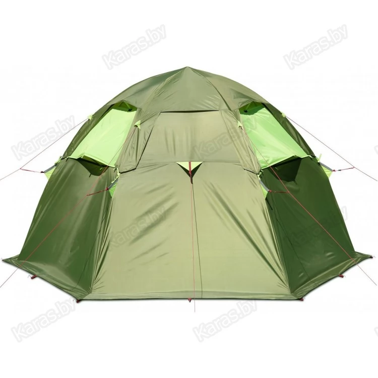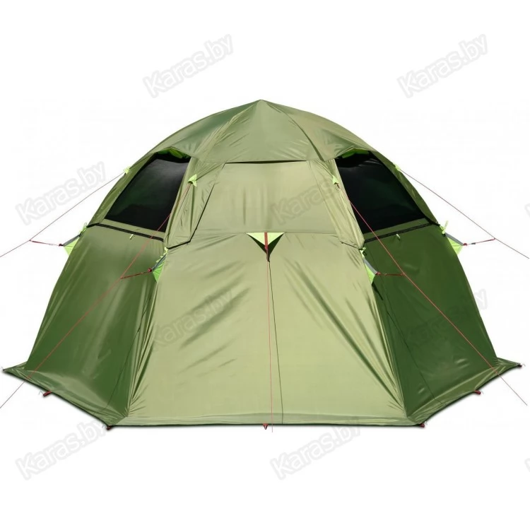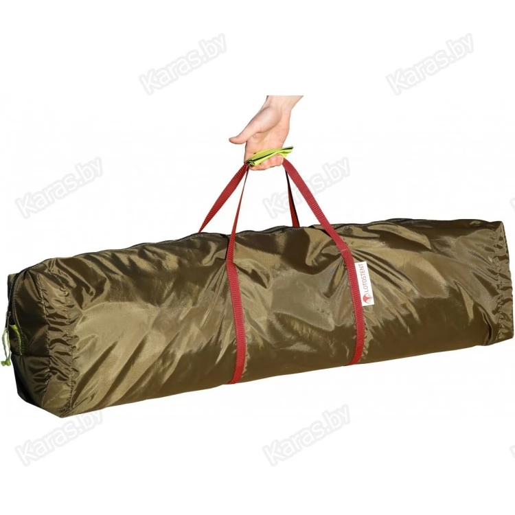 Тент палатки пошит из прочной ткани Polyester Oxford 210D с влагостойкостью не менее 5 000 мм вод. столба. Швы тента проварены изнутри герметизирующей лентой. Молнии оконных и дверных проемов оснащены внешними защитными планками, обеспечивающими им защиту от дождя и от продувания ветром.
