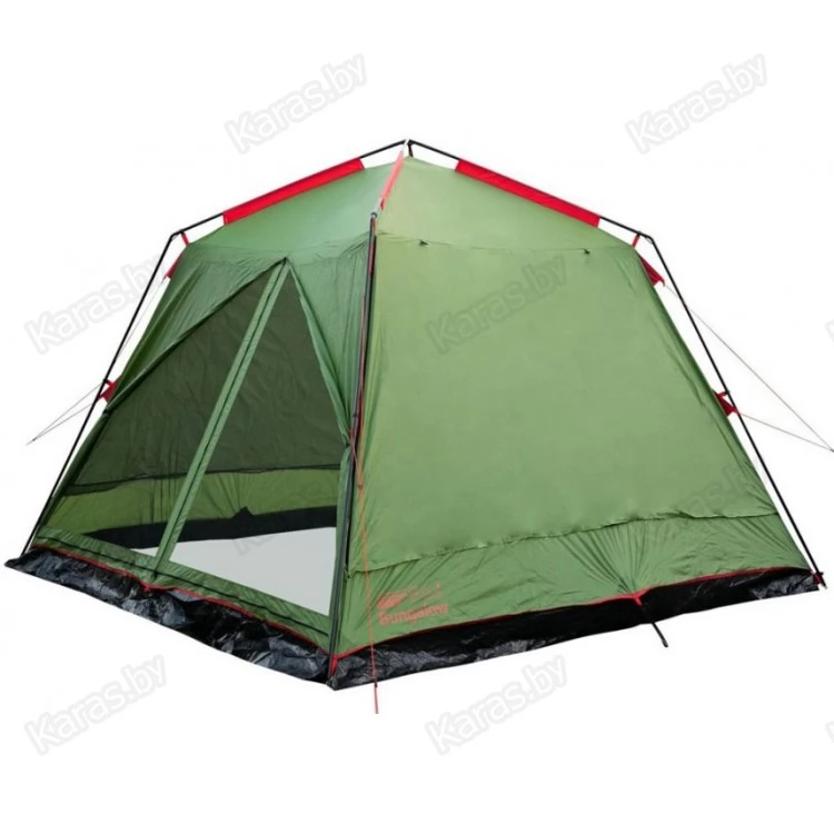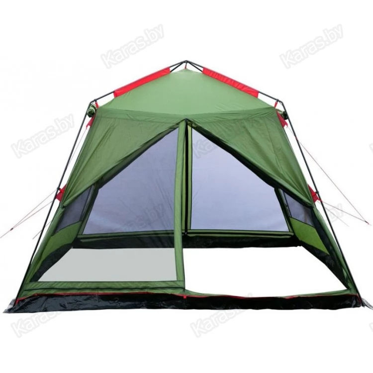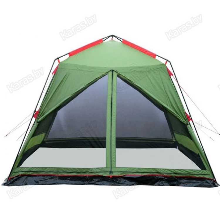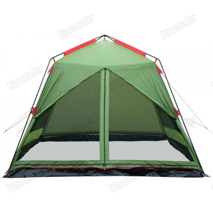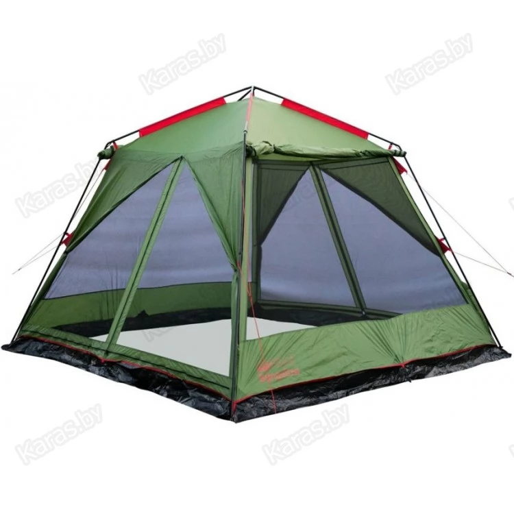 Кемпинговый палатка-шатер четырехгранной формы с 2 входами – оптимален для отдыха на открытом воздухе в летнее время, спасает от легкой непогоды, солнца и насекомых. Отлично подойдёт для организации, кухни, столовой или кают –кампании в кемпинговом или туристическом лагере.