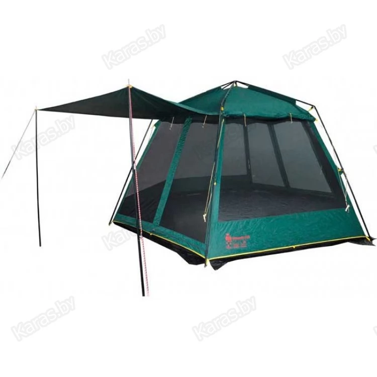 Размер шатра 3 на 3 метра, высота - 2.25 метра, что позволяет стоять высокому взрослому человеку в полный рост не сгибаясь. Тент оснащен по периметру противомоскитной сеткой, благодаря чему вы будете надежно укрыты от надоедливых насекомых.