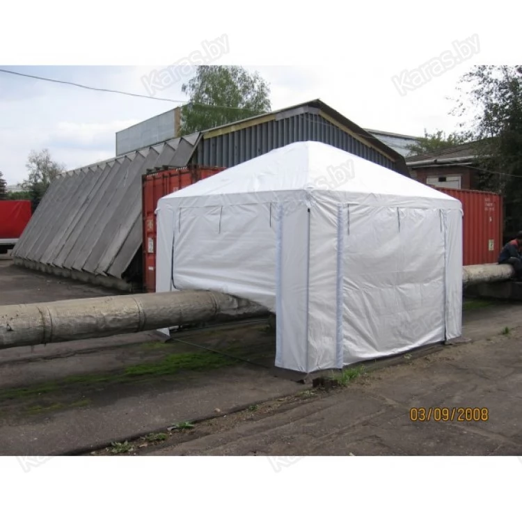 Основой укрытия служит легкий, легкомонтируемый металлический каркас. Тент укрытия выполнен из ткани ТАФ с огнеупорной пропиткой. Различные конфигурации палаток и укрытий позволяют адаптировать их для использования в сложных промышленных и пространственных условиях.