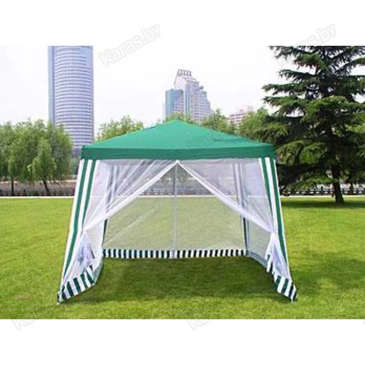 Шатёр, который сможет укрыть небольшую компанию от палящего солнца или внезапной непогоды. Москитная сетка будет полезна в местах, где много насекомых, например комаров или мошек. Быстросборная конструкция и лёгкий каркас позволяют использовать тент в любых условиях.