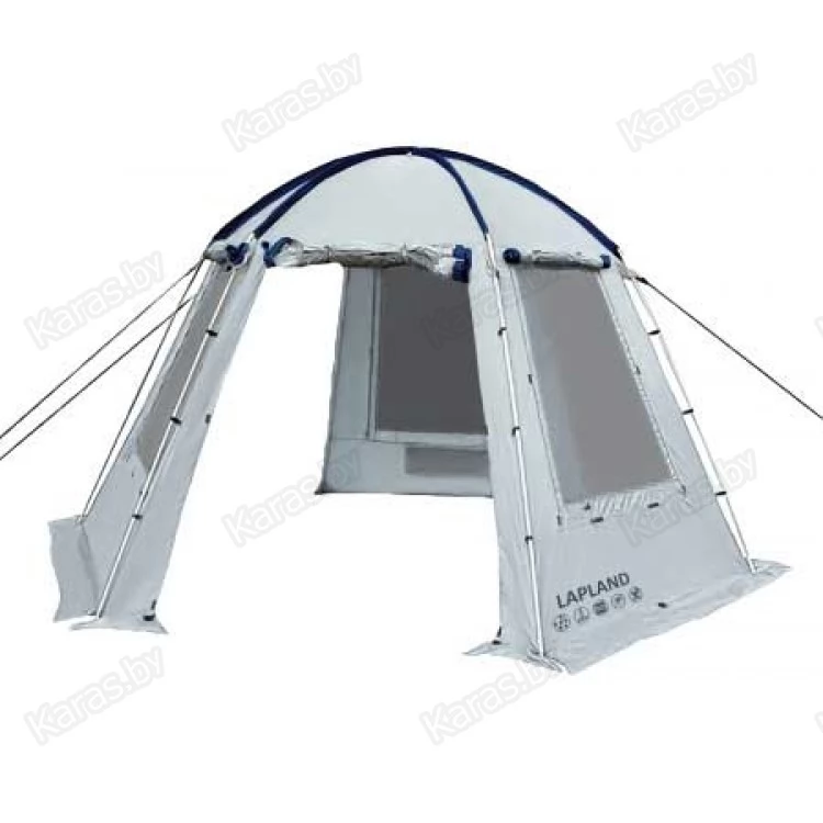 Входы и окна продублированы москитными сетками. Специальная "юбка" дополнительно защитит от ветра, влаги и насекомых. Штормовые оттяжки прошиты светоотражающей нитью.
