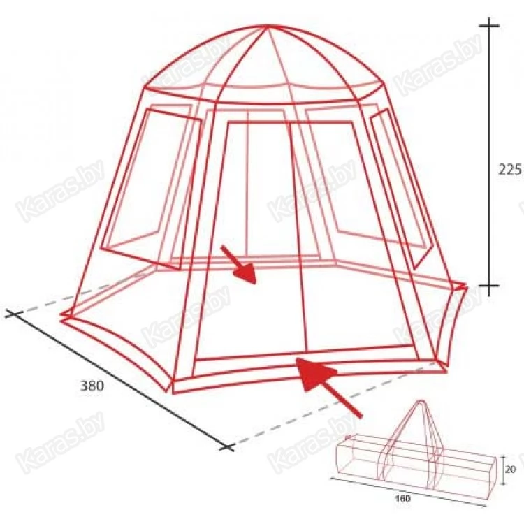 Инновационная система FASTBERG в конструкции каркаса обеспечивает мгновенную сборку шатра. Входы и окна продублированы москитными сетками. Специальная "юбка" дополнительно защитит от ветра, влаги и насекомых. Штормовые оттяжки прошиты светоотражающей нитью.