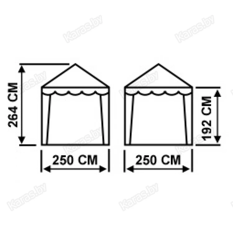 Шатер-беседку 2,5 х 2,5 м с четырехскатной крышей можно использовать как павильон для торговли или летнее кафе, а также как беседку на дачном участке. Стальной каркас беседки имеет нижнее основание, все его части надежно крепятся между собой. Крестовины сделаны из утолщенной металлической трубы, что позволяет повысить устойчивость конструкции. Стропы и липучки помогают хорошо натянуть тент.