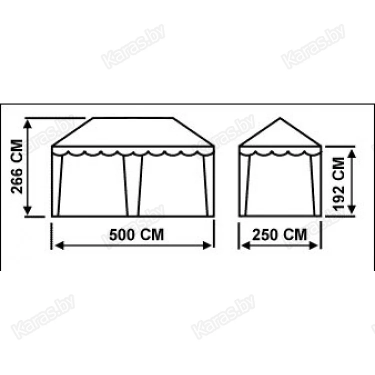 Размер основания: 5,0х2,5 м. Высота стенки: 1,92 м. Высота в коньке: 2,66 м.