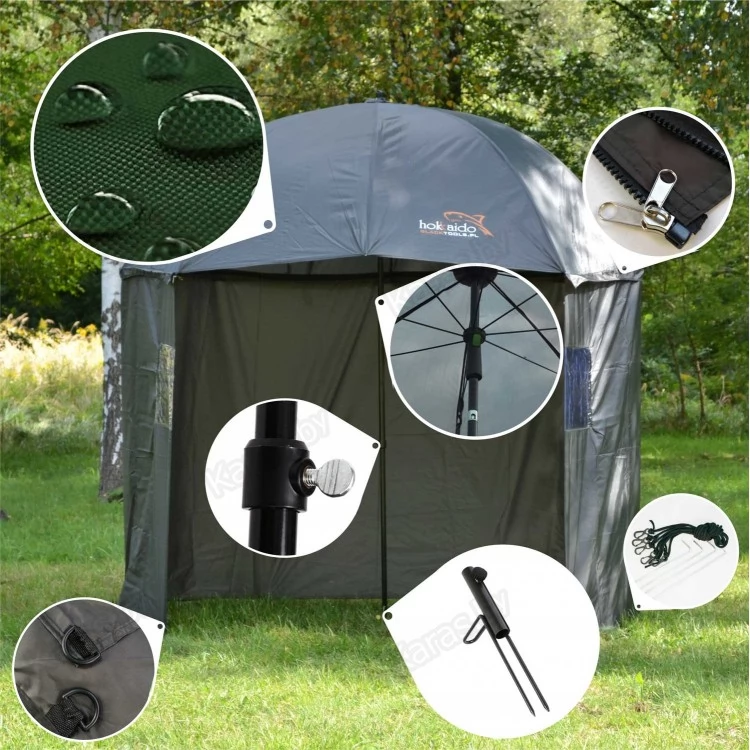 Зонт для рыбалки просто необходим, когда погодные условия не располагают к рыбалке. Этот зонт поставляется с чехлом для переноски, что делает его удобным и легким для транспортировки на место рыбалки. Как только вы окажетесь около воды, раскладывание зонта занимает буквально мгновение и происходит очень легко. Все продумано до мелочей и может использоваться двумя способами - как обычный зонт или как укрывной "шатер" со стенкой 3/4. Зонт имеет регулируемую высоту, поэтому мы можем легко настроить его под свои нужды. Весь зонт прочен и устойчив благодаря ребрам жесткости. Материал зонта водонепроницаем. Зонт для рыбалки - отличная идея для рыбацких ночей на воде или на время капризной дождливой или ветреной погоды.