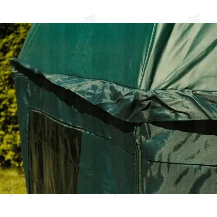 Все швы и молнии дополнительно герметично закрыты. Вход снимается с помощью двух вертикальных молний и липучки сверху. В дождливые или безветренные дни все изделие можно свернуть в рулон.