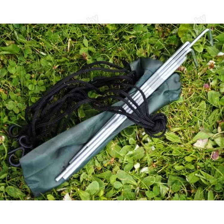 В комплект входят крепления к земле ("колышки"), которые позволяют палатке прочно стоять в течение длительного времени на озере или реке.