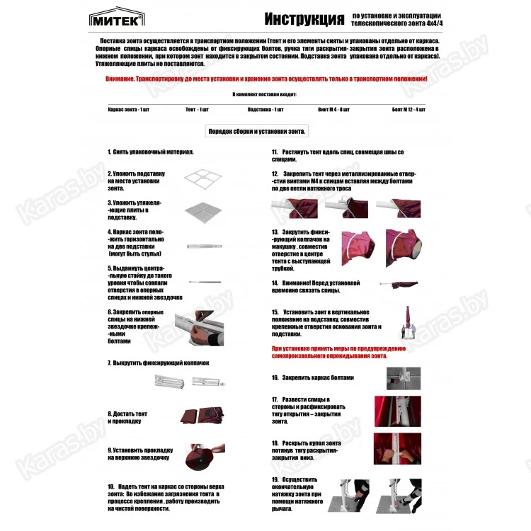 Зонт Митек телескопический квадратный 4х4м