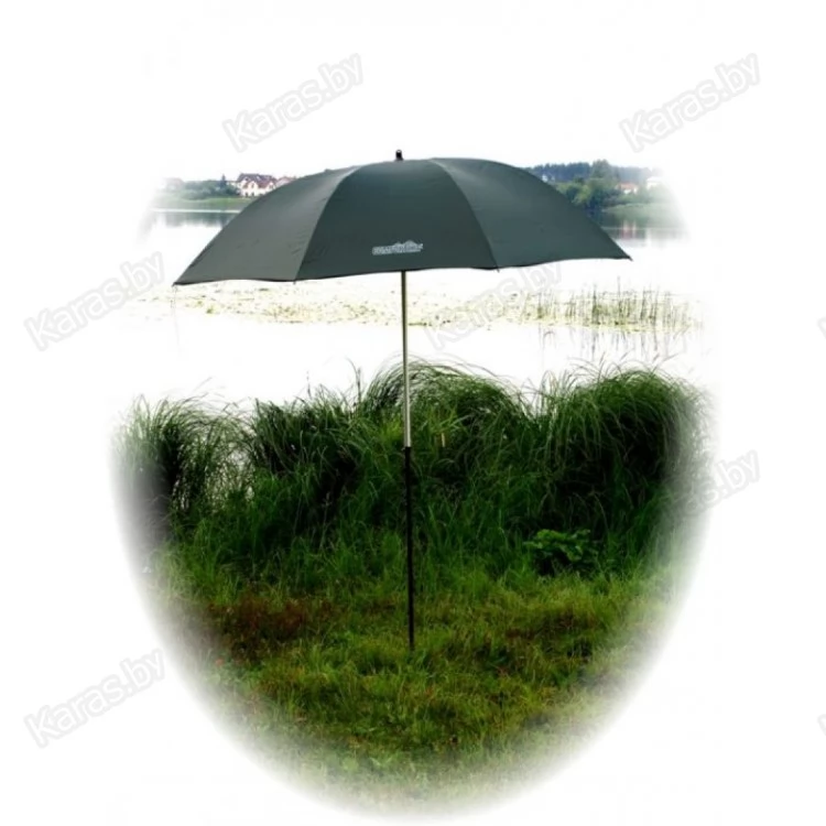Зонт-укрытие. Цвет зелёный.  Длина спиц 220 см. Диаметр купола 186 см. Транспортировочная длина 128 см. Отлично приспособлен для укрытия в дождливую погоду либо как защита от солнца. Имеет возможность наклона купола на 45 градусов.