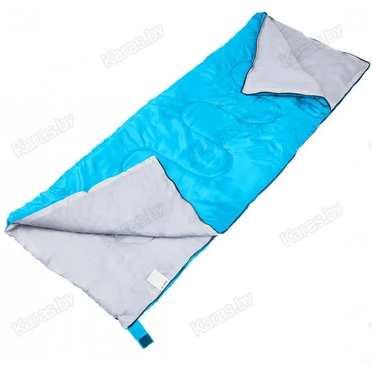 Туристический спальный мешок-одеяло. Его можно расстегнуть и использовать как полноценное одеяло — в походе, на даче, дома. Этот спальник полностью сделан из синтетических материалов. Внешний слой из полиэстера, внутренний — тоже полиэстер. Возможно, это не так приятно при соприкосновении с кожей, как натуральная хлопчатобумажная ткань, зато синтетика отлично отводит влагу (даже вспотев, вы не ощутите дискомфорта) и быстро сохнет. Наполнитель тоже изготовлен из полиэстера. Он рыхлый, мягкий, лёгкий, хорошо сохраняет тепло, не теряет теплоизоляционных свойств даже в случае намокания. Одеяло с таким наполнителем отлично проявит себя в местности с повышенной влажностью, а также в ситуации больших колебаний суточных температур.
