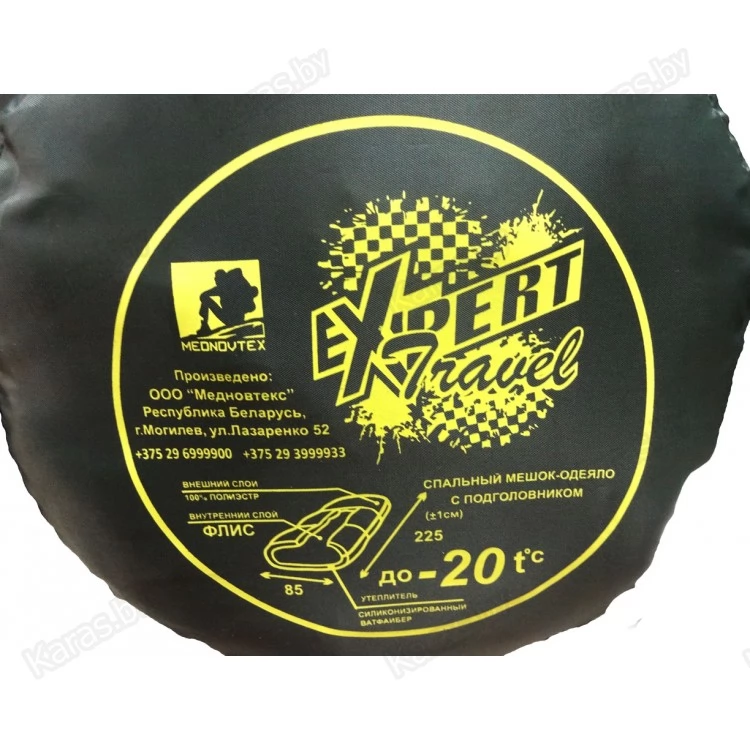 Удобный и теплый спальный мешок Mednovtex Expert Travel. Вшитая молния позволяет расстегнуть мешок с двух сторон и использовать его как одеяло. Оптимальная ширине (85 см) спальника для комфортного отдыха. Внешний материал выполнен из прочной непромокаемой ткани полиэстер Oxford 240D. Внутренняя флисовая подкладка. Утеплителем служит силиконизированный вайт-файбер, материал не сбивается и не впитывает влагу. Спальный мешок укладывается в сумку из плотного материала.