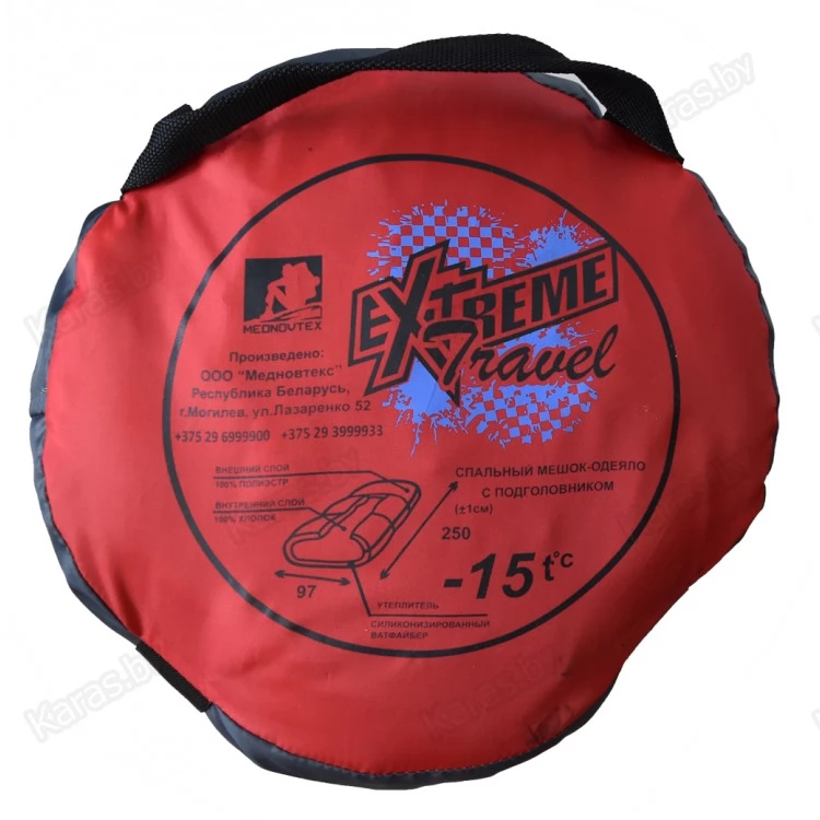 Удобный и теплый спальный мешок Mednovtex Extreme Travel. Вшитая молния позволяет расстегнуть мешок с двух сторон и использовать его как одеяло. Благодаря увеличенной ширине (97 см) находится внутри спального мешка стало еще более комфортно. Внешний материал выполнен из прочной непромокаемой ткани полиэстер Oxford 240D. Внутренняя подкладка выполнена из натуральных материалов (хлопок). Утеплителем служит силиконизированный вайт-файбер, материал не сбивается и не впитывает влагу. Спальный мешок укладывается в сумку из плотного материала.