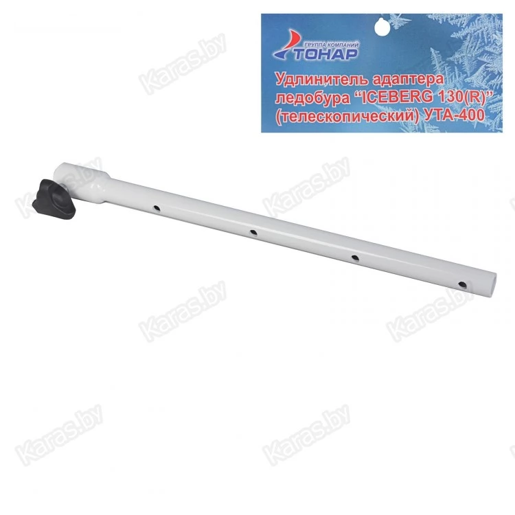 Когда лед слишком толстый и необходимо увеличить глубину бурения ледобура "ICEBERG", можно воспользоваться телескопическим удлинителем УТА-400. Такой удлинитель можно использовать вместе с адаптером под шуруповерт АШ-06 или АШ-05. Возможно ступенчатое увеличение глубины бурения с шагом 10 см.