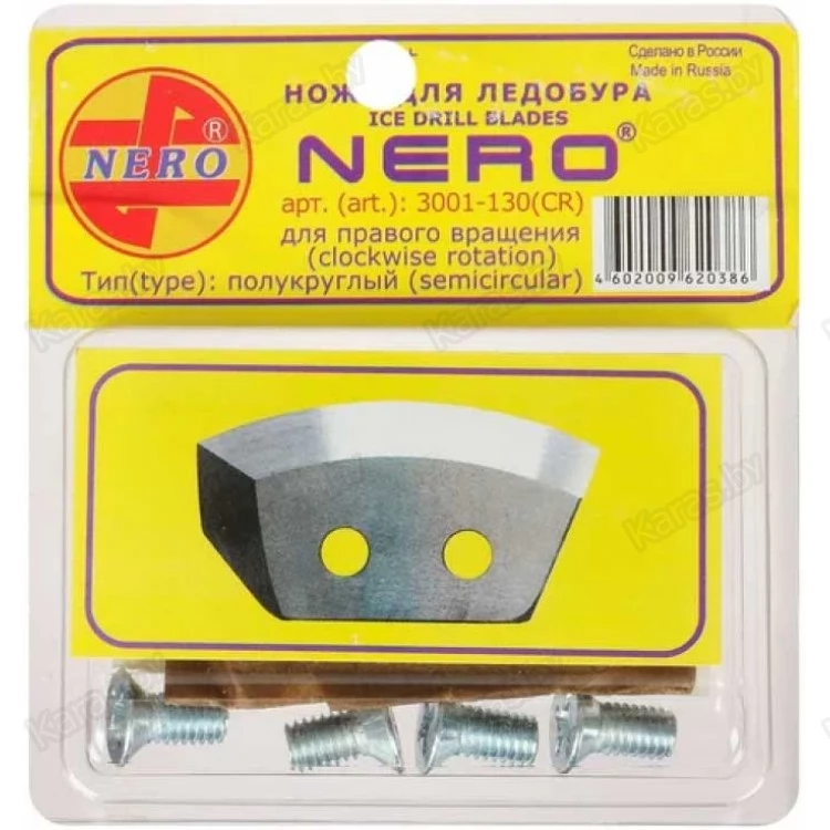 Наш завод НЕРО изготавливает ножи различной конфигурации, предназначенные для ледобуров левого и правого вращения с плоскими площадками рабочей части и стандартными межцентровыми расстояниями отверстий крепления – 16 или 24 мм. Отдельные операции при их производстве заимствованы из технологий, применяемых в оборонной промышленности. Ножи подходят практически ко всем отечественным ледобурам со шнеками диаметром от 110 до 200 мм, но наиболее они эффективны при работе следобурами NERO.