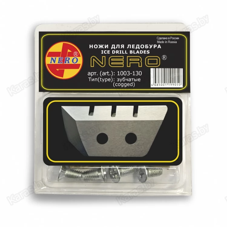 Наш завод НЕРО изготавливает ножи различной конфигурации, предназначенные для ледобуров левого и правого вращения с плоскими площадками рабочей части и стандартными межцентровыми расстояниями отверстий крепления – 16 или 24 мм. Отдельные операции при их производстве заимствованы из технологий, применяемых в оборонной промышленности. Ножи подходят практически ко всем отечественным ледобурам со шнеками диаметром от 110 до 200 мм, но наиболее они эффективны при работе следобурами NERO.
