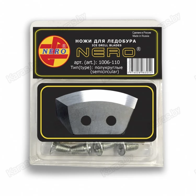 Наш завод НЕРО изготавливает ножи различной конфигурации, предназначенные для ледобуров левого и правого вращения с плоскими площадками рабочей части и стандартными межцентровыми расстояниями отверстий крепления – 16 или 24 мм. Отдельные операции при их производстве заимствованы из технологий, применяемых в оборонной промышленности. Ножи подходят практически ко всем отечественным ледобурам со шнеками диаметром от 110 до 200 мм, но наиболее они эффективны при работе следобурами NERO.
