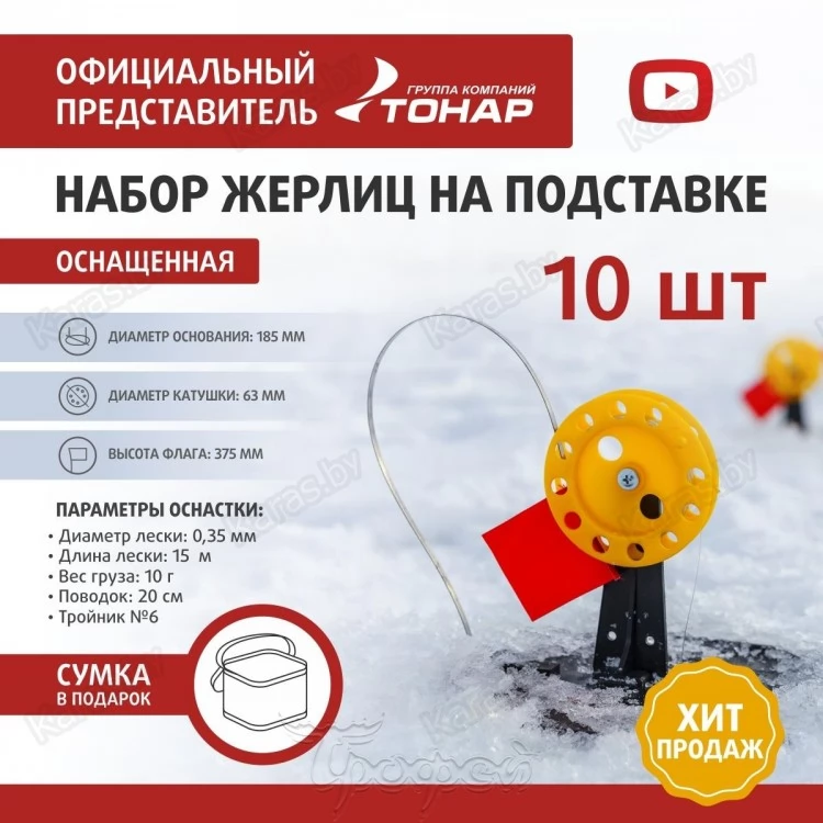 Выходя на рыбалку всегда хочется увеличить шансы на поимку рыбы. В этом Вам поможет "Набор жерлиц на подставке оснащенная ЖЗО-04". Жерлица - это снасть для ловли на живца. Охота на хищника зимой это увлекательное занятие для любого рыболова. Можно ловить на блесну или балансир, но рыба охотнее откликается на живую приманку. Прежде всего конструкция наших жерлиц способствует затемнению лунки площадкой-основанием, рыба спокойнее подходит не боясь яркого света. Яркая расцветка катушки и флажка помогает быстро увидеть сработку в зимних условиях. В компактной сумке расположены сразу 10 штук.