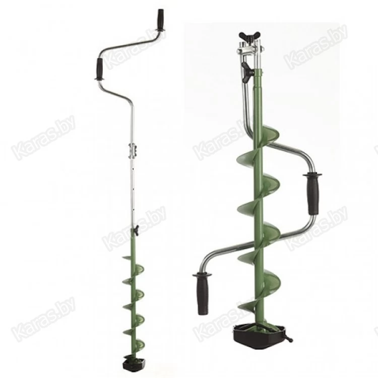 - Телескопическая выдвижная рукоятка позволяет регулировать высоту ледобура