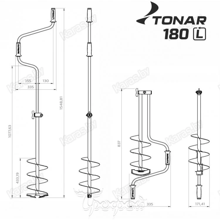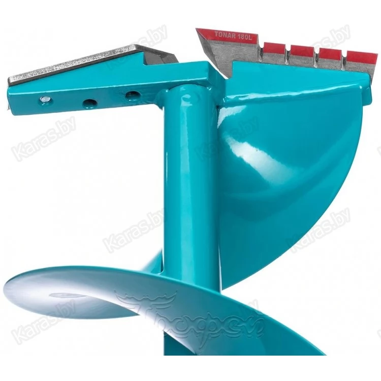 Обновленная модель двуручного Ледобура ЛР-180Д с диаметром 180 мм выпускается с цельнотянутым шнеком. Верхняя рукоятка ледобура смещена относительно оси шнека на 130 мм, а нижняя на 150 мм. Скорость бурения сразу возрастает, а нагрузка равномерно распределяется на две руки и становится незаметной. Ход бура при таком бурении более плавный (без рывков).