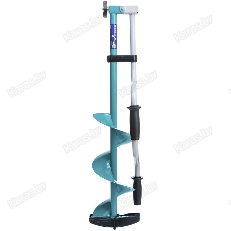 Складная ручка уменьшила транспортировочные размеры ледобура до 91 см. Запатентованный замок помогает быстро привести бур в рабочее положение, а так же не дает люфта при использовании. Ледобур легко справляется с бурением метрового льда не смотря на малый размер в сложенном виде. Если вы живете в районах, где глубина льда два и более метра то эта модель вам тоже подойдет.