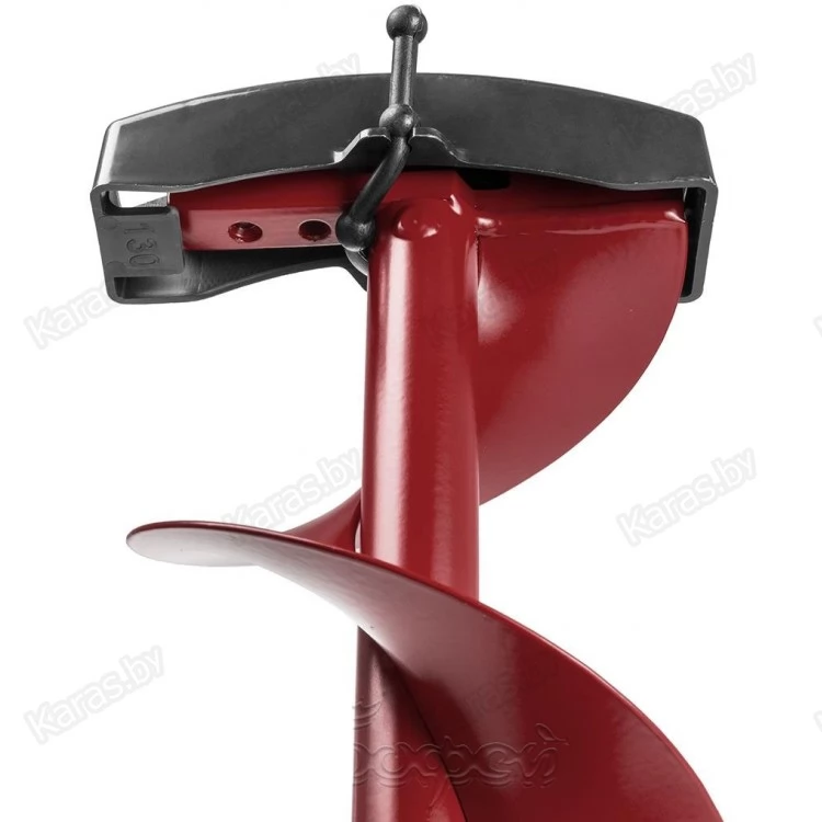 Телескопическая вставка-удлинитель при помощи фиксированных отверстий выдвижения позволяет отрегулировать высоту ледобура под толщину льда и рост рыболова. Максимальная глубина бурения достигает практически до 1,5 м.