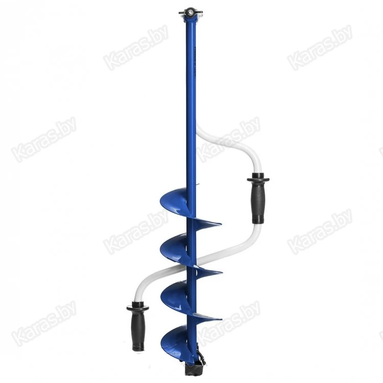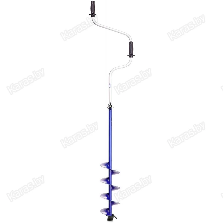 Ледобур рыболовный складной шнековый c левым вращением предназначен для бурения отверстий во льду при ловле рыбы. Верхняя рукоятка ледобура смещена относительно оси ледобура на 130 мм, а нижняя на 150 мм. Такое расположение рукояток позволяет вращать ледобур одновременно двумя руками, тем самым, не прикладывая особых усилий, увеличивая скорость бурения лунок во льду.