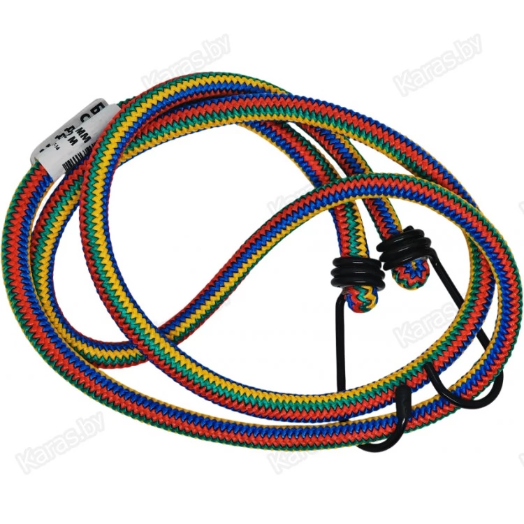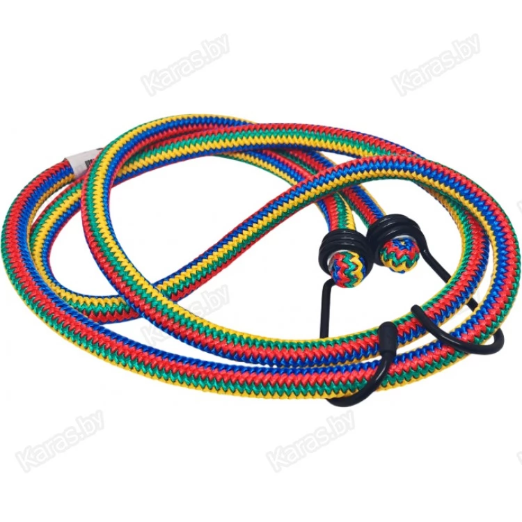 Веревка эластичная различной длины. Удобна для транспортировки груза в быту. Веревка представляет собой шнур из резиновых жил в специальной оплетке. Для удобства крепления и перевозки на концах веревок присутствуют металлические крюки. Они гарантируют сохранность груза и надежность его фиксации при перевозки.