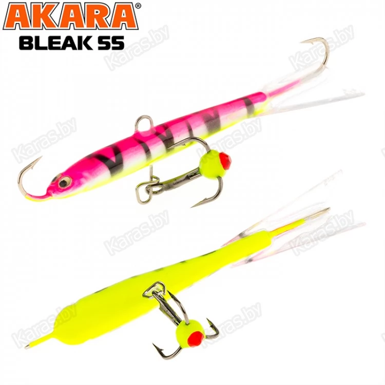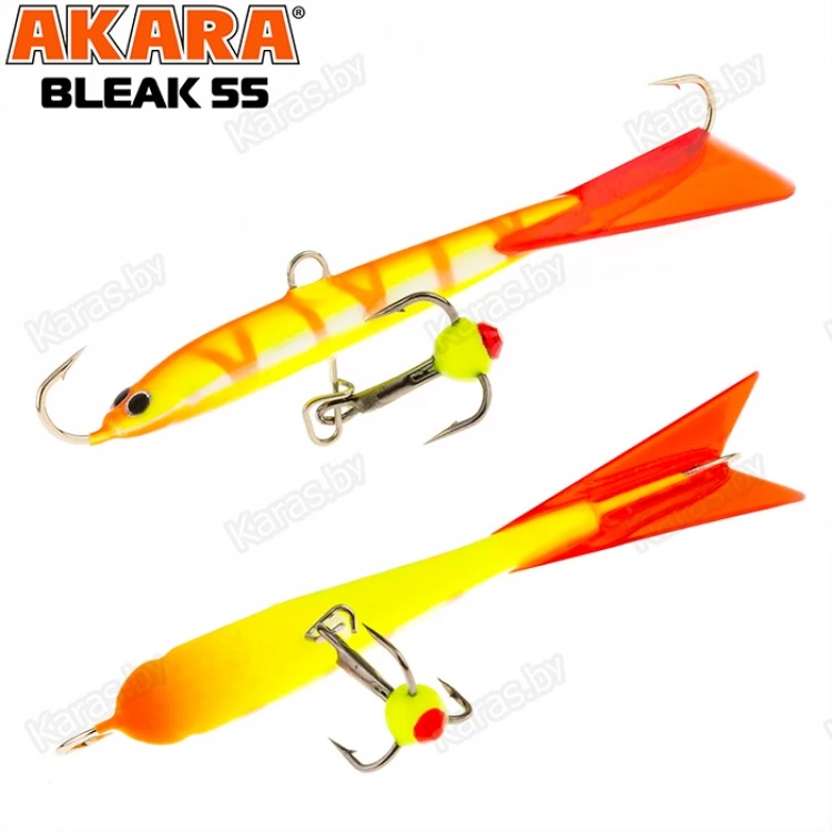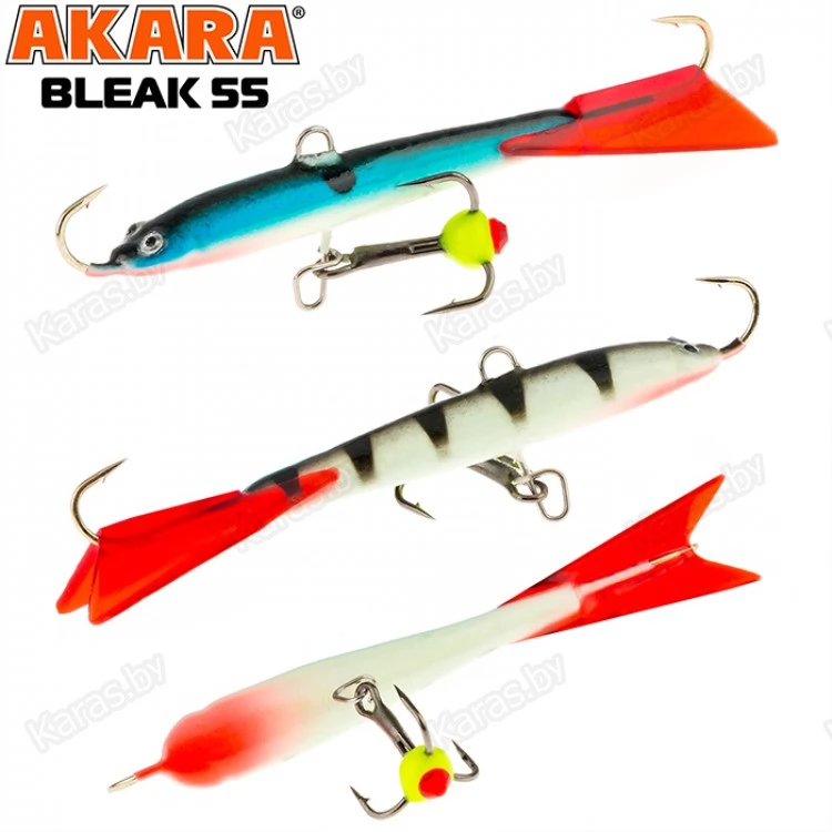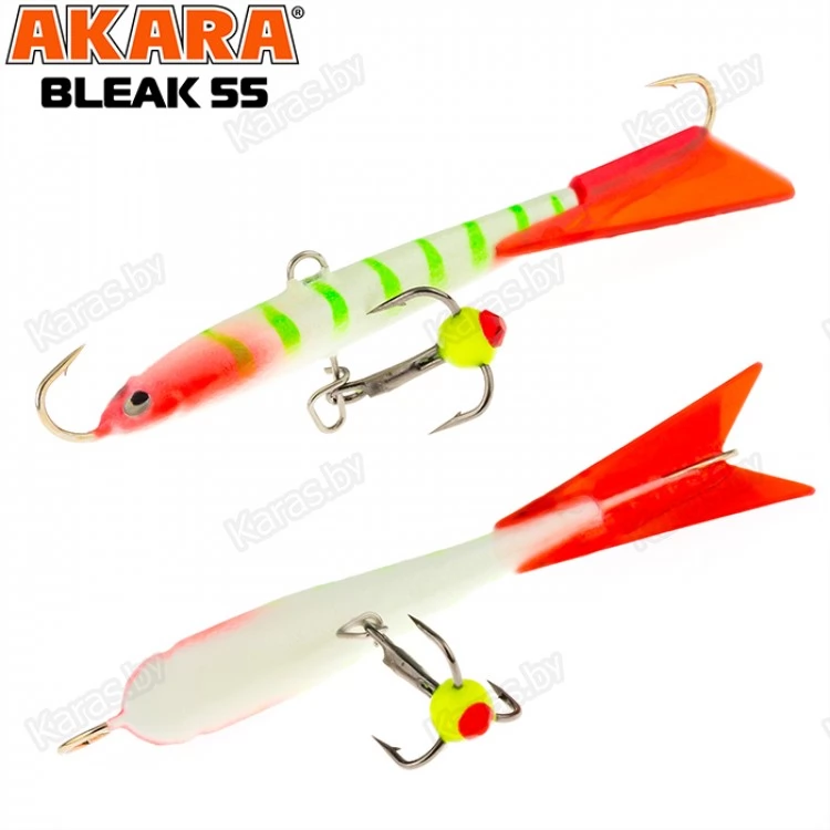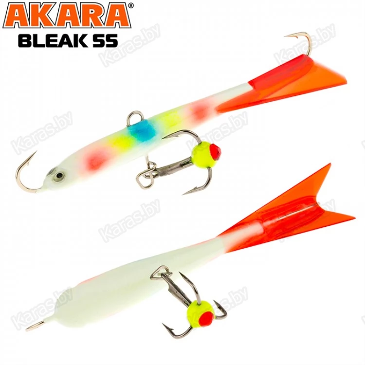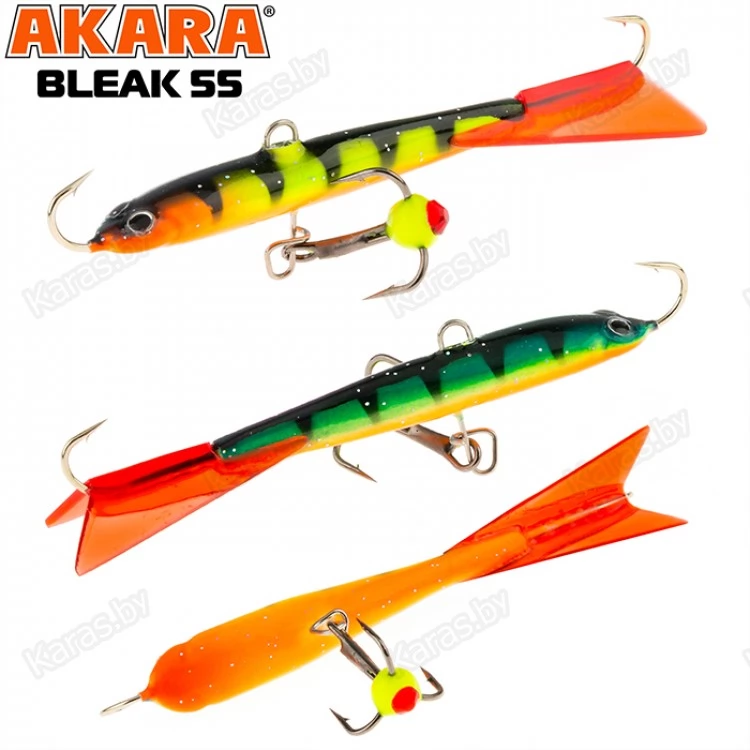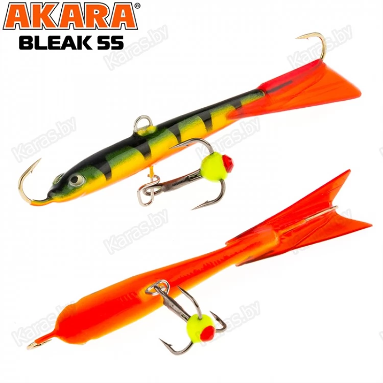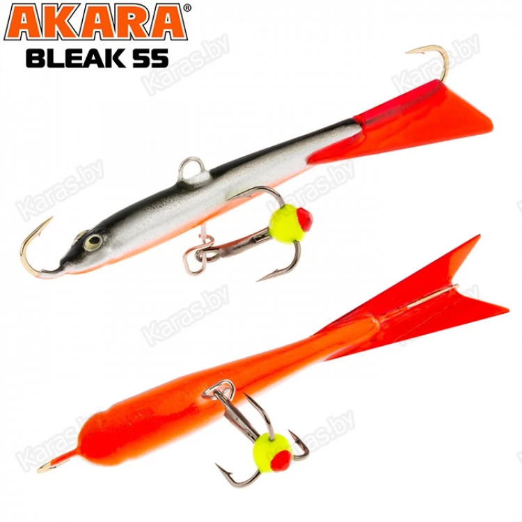 Балансир Akara Bleak 55 разработан для зимней ловли хищных рыб, таких как судак и окунь. Балансир изготовлен из качественных, морозостойких материалов и оснащен высокопрочными крючками и тройниками японской компании Maruto. Длина балансира 55 миллиметров, вес - 8 грамм. Балансиры этой модели красятся в уловистые цвета, причем окрашивание осуществляется с применением UV красок (светятся в ультрафиолетовом диапазоне), либо с использованием фосфорных красок (светятся в темноте). Балансир имеет стабильную, высокоамплитудную, повторяющуюся игру, которая обеспечит эффективную рыбалку.