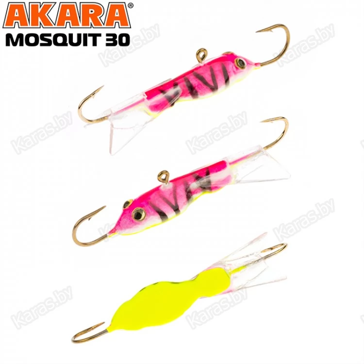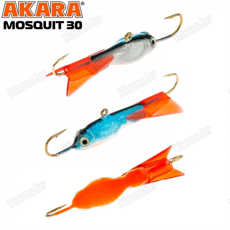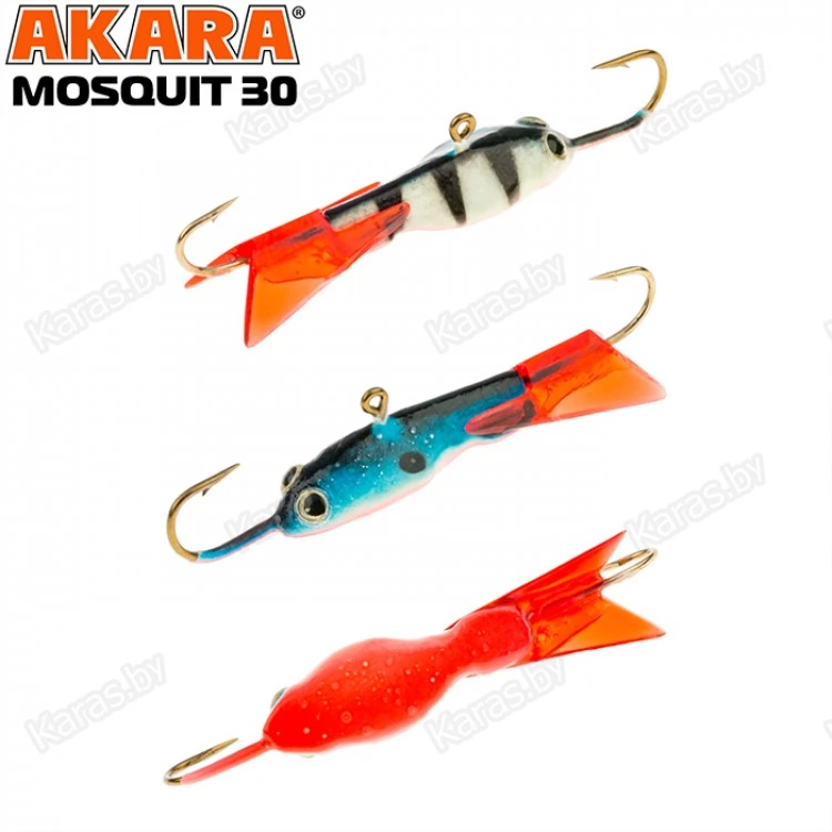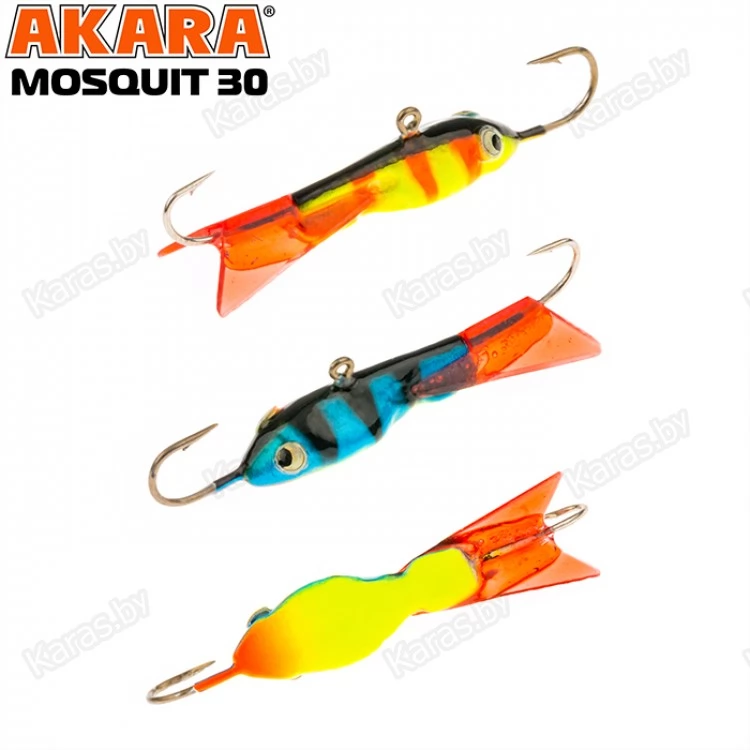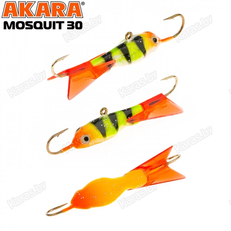 Балансир Akara Mosquit 30 разработан для зимней ловли хищных рыб, таких как окунь и судак. Балансир изготовлен из качественных, морозостойких материалов и оснащен высокопрочными крючками и тройниками японской компании Maruto. Длинна балансира 30 миллиметров, вес 2,5 грамм. Балансиры этой модели красятся в уловистые цвета, причем окрашивание осуществляется с применением флуоресцентных UV красок (светятся в ультрафиолетовом диапазоне), либо с использованием люминесцентных фосфорных красок (светятся в темноте). Балансир прекрасно отзывается на анимацию и имеет яркую, высокоамплитудную игру, которая может спровоцировать на поклевку даже пассивного хищника. Балансир Akara Mosquit 30 станет прекрасным пополнением арсенала любителей зимней рыбалки.