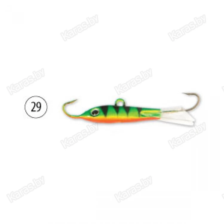 Это отличные рабочие модели балансиров для ловли зимнего хищника. Ловить балансирами можно практически везде, на всех водоемах, где обитает хищная рыба. Для приличных глубин существуют большие и тяжелые балансиры, для мелководий легкие и маленькие. В передней и задней частях балансира Akara Pro находятся одинарные крючки, жала которых направлены вверх, к тому же, задняя часть данного изделия имеет стабилизатор в форме небольших крылышек. На "спинке" этой рыбки расположено колечко, для крепления лески, а на "брюшке" подвешен тройник.