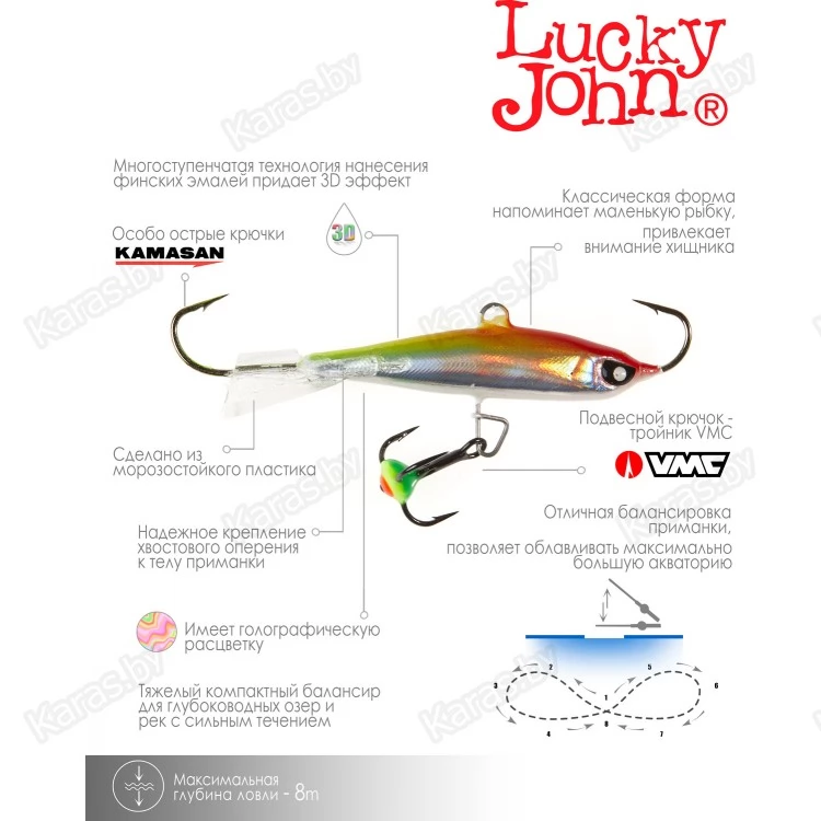 "Nordic" - тяжелый, компактный, идеально сбалансированный балансир, специально разработанный для глубоководных озер и рек с достаточно сильным течением. Приманка доступна в трех размерах - 40, 50, 60 мм и весом 12, 21 и 36 грамм соответственно. Классическая форма приманки по форме напоминает маленькую рыбку, что дополнительно привлекает внимание хищника. Балансир комплектуется крючками от японского производителя KAMASAN. Широкая цветовая линейка позволит подобрать приманку для любых водоемов и условий ловли.