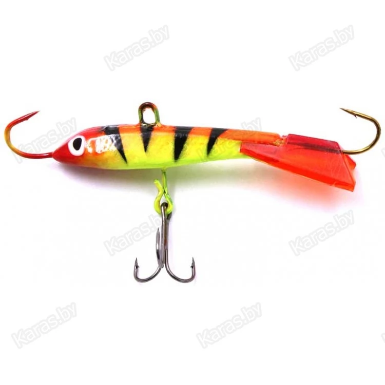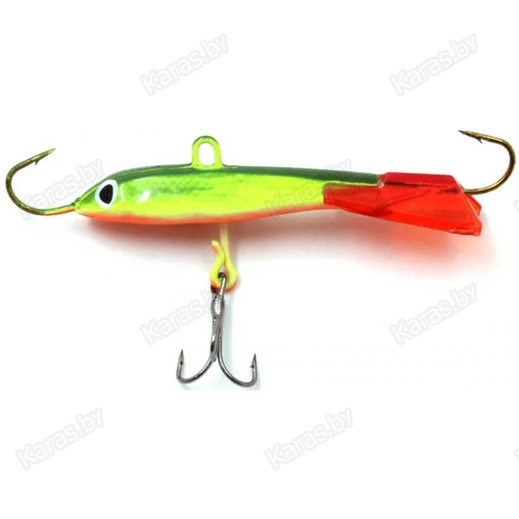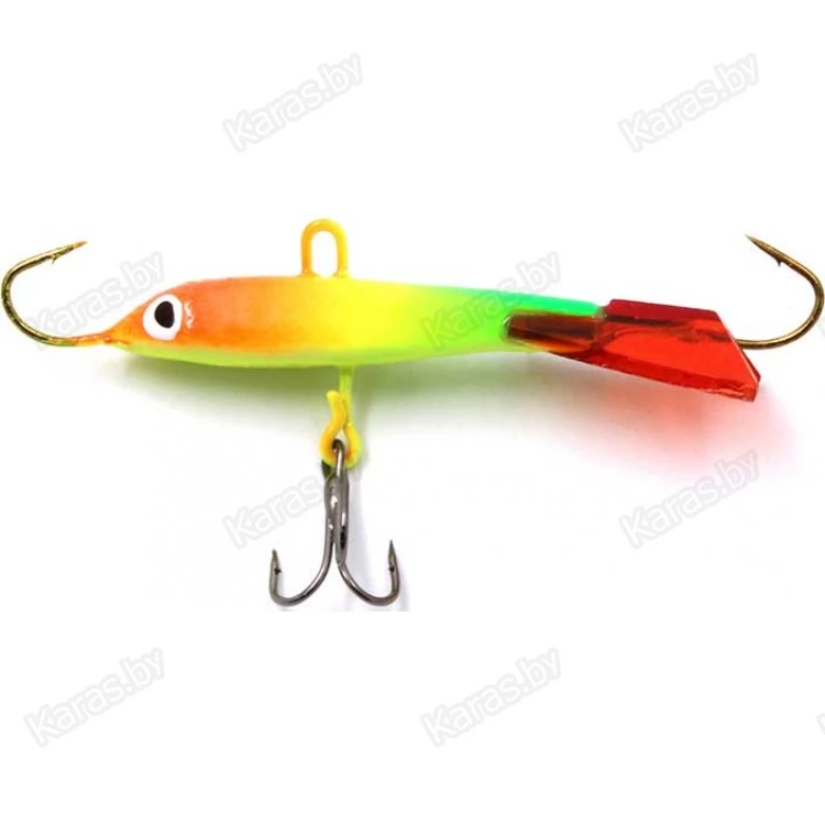 Балансир "Яман" Быстрянка - это балансир имеющий немного вытянутое с острой мордочкой тело с жестким пластиковым хвостиком красного цвета, благодаря которому приманка имеет интересную игру с далеким уходом от оси лунки. Одна из самых уловистых приманок для отвесного блеснения. Балансир обладает эффективной игрой в условиях вялого настроения хищника. Отличается отличным качеством и потрясающими рабочими свойствами.