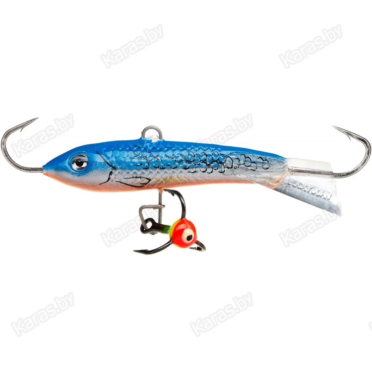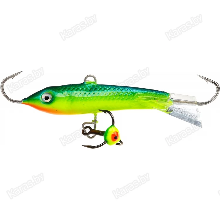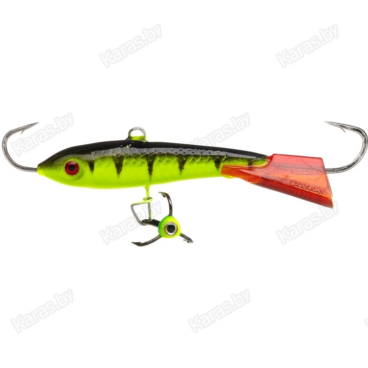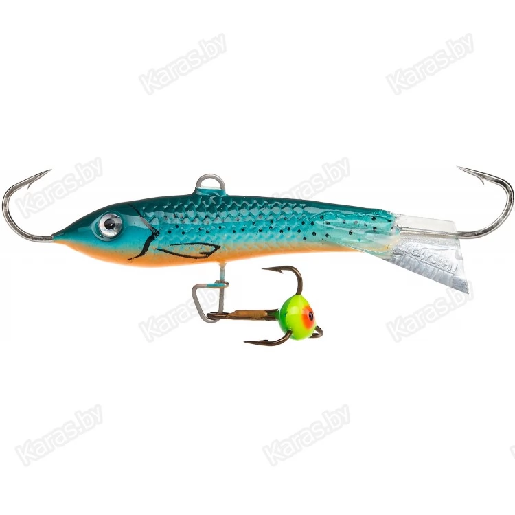 Очень востребованный балансир для ловли среднего и крупного окуня на глубинах до 7-8 метров. Длина тела приманки 50 мм. Приманка может использоваться на водоемах с небольшим течением. Оптимальный диаметр используемой лески - 0,16 - 0,20 мм, плетеного шнура - 0,09 - 0,11 мм. В зависимости от пристрастия местного хищника, можно подобрать необходимую расцветку приманки. Балансир с успехом используется также и для ловли щуки, судака и берша.