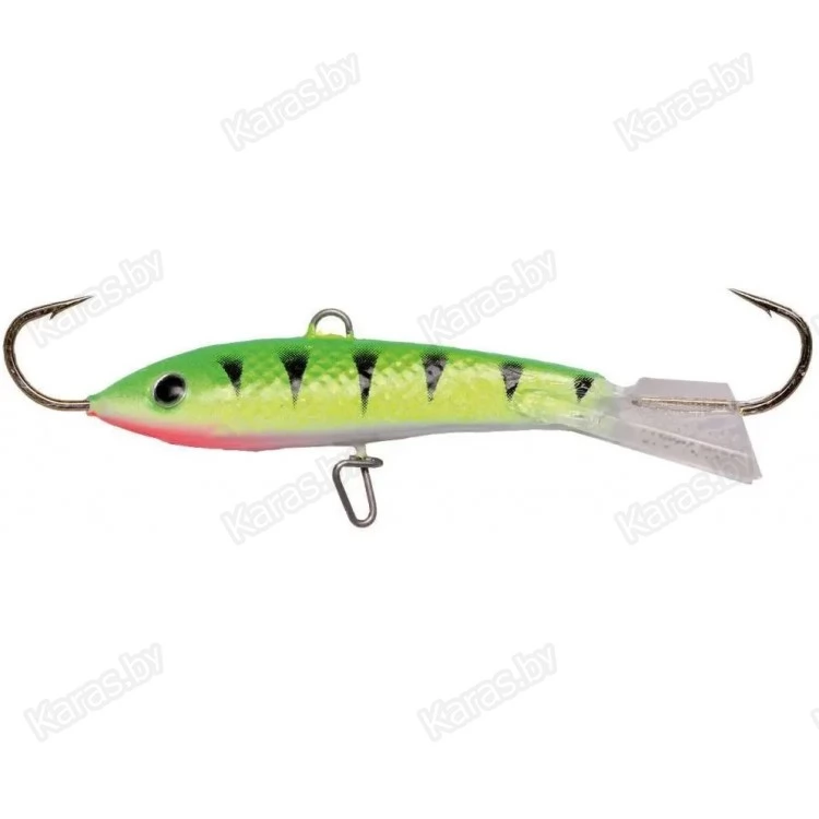 Порой щука или судак реагируют только на крупные приманки, активно перемещающиеся в придонном слое. Эти, достаточно крупные балансиры длиной 85 мм облавливают большую площадь под лункой и издалека привлекают хищника. Не забывайте, что чем крупнее приманка, тем большая пауза нужна ей между взмахами удилища. Эти балансиры с успехом могут использоваться в реках с течением и для ловли в отвес с лодки, по открытой воде в теплое время года. Для этих приманок рекомендуется монофильная леска диаметром до 0,35 мм, или плетеный шнур до 0,20 мм.