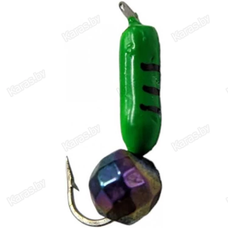 Мормышка вольфрамовая "Столбик" с граненым шаром "Хамелеон" и ушком 2.0 мм (зеленый)