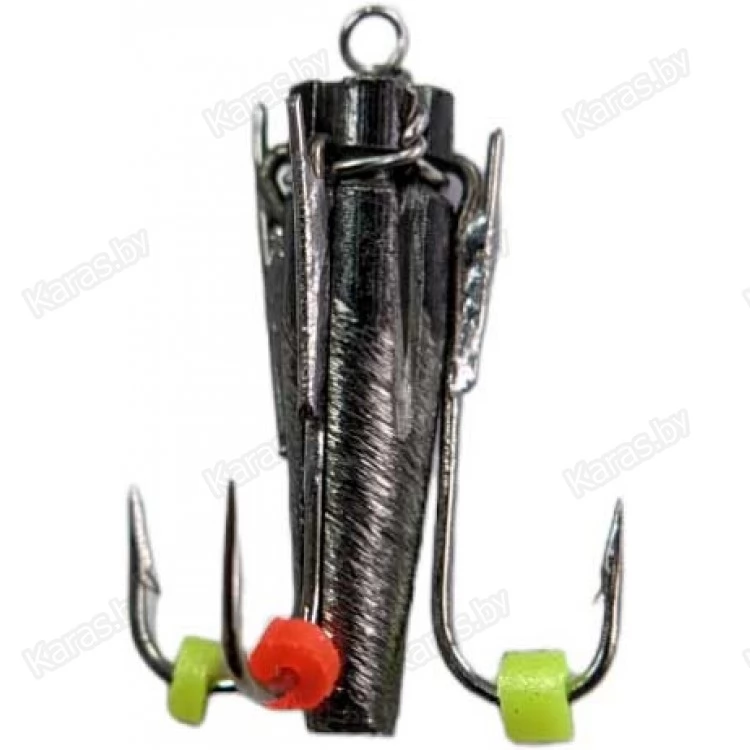Ведьмой называется безнасадочная мормышка, имеющая форму суженного книзу конуса, в верхней части которого на специальном каркасе свободно подвешены два или три крючка, оснащенные различными разноцветными украшениями: