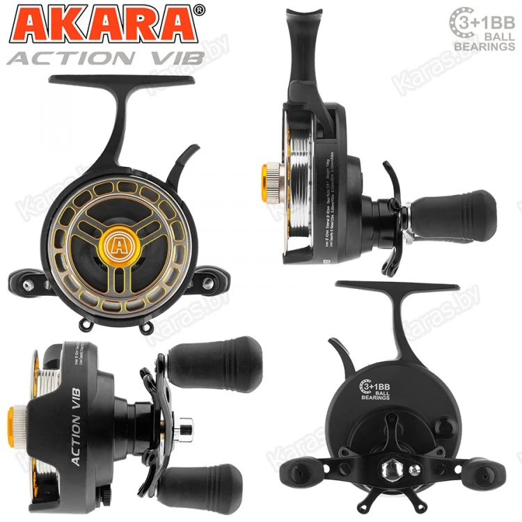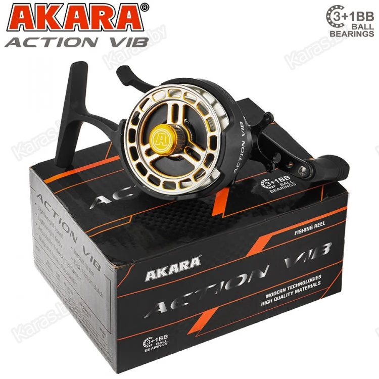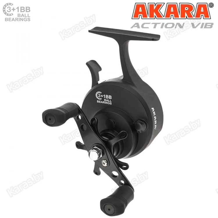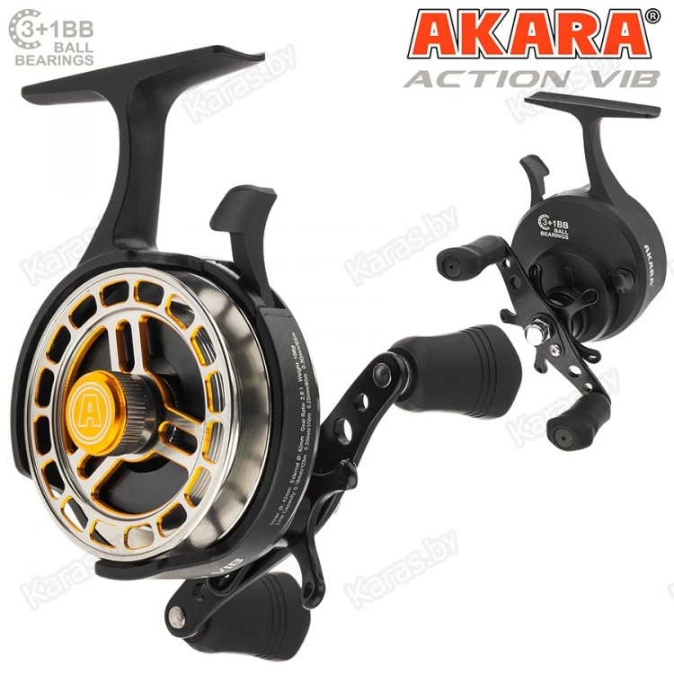 Катушка зимняя мультипликаторная Akara Action Vib - её отличительной особенностью является удлинённая ножка, которая обеспечивает комфорт и удобство при удержании удочки в процессе вываживания, а также удобная клавиша-курок для свободного сброса лески, которая расположена непосредственно под указательным пальцем. Двойная сбалансированная рукоятка в совокупности с эргономичными, сделанными из резины кнобами, делают вываживание рыбы чётким и контролируемым.