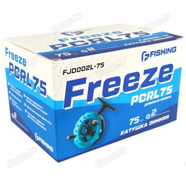 F-Fishing Freeze PCRL 75 – легкая и прочная катушка для зимней рыбалки с диаметром шпули 75 мм и удлиненной лапкой. Корпус и шпуля катушки выполнены из ударопрочного и морозостойкого поликарбоната, не подверженного обмерзанию и налипанию снега. Плавный ход и вращение катушке обеспечивают два осевых шарикоподшипника из нержавеющей стали. Freeze PCRL 75 оснащена трещоткой и фрикционным тормозом. Ручка фрикциона имеет большой диаметр и позволяет плавно регулировать тормозное усилие.