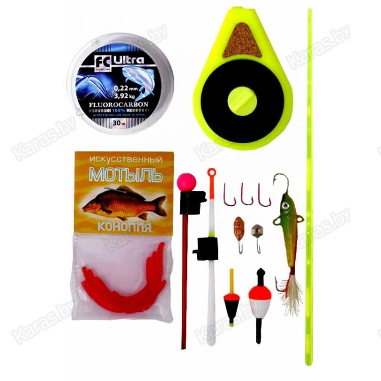 Набор рыболова включает в себя всё необходимое для похода на зимнюю рыбалку. Отлично подойдёт для начинающих рыболовов.