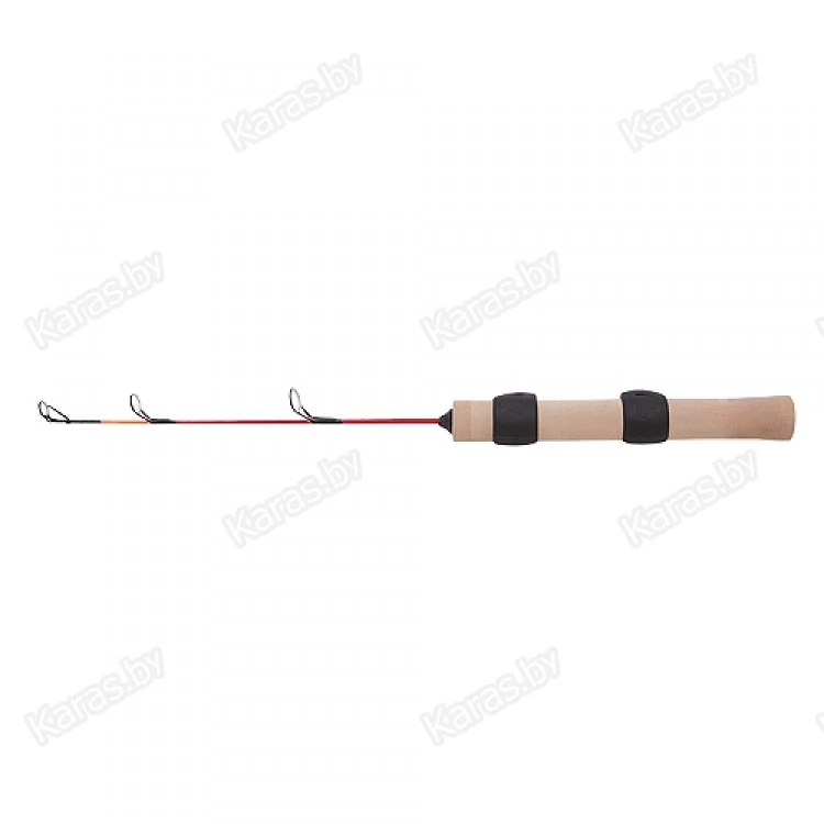 Зимняя удочка для блеснения с выдвижным хлыстиком, укомплектованным пропускными кольцами и тюльпаном DYNAFLO. На неопреновой рукоятке установлены подвижные кольца для закрепления катушки в необходимом месте.